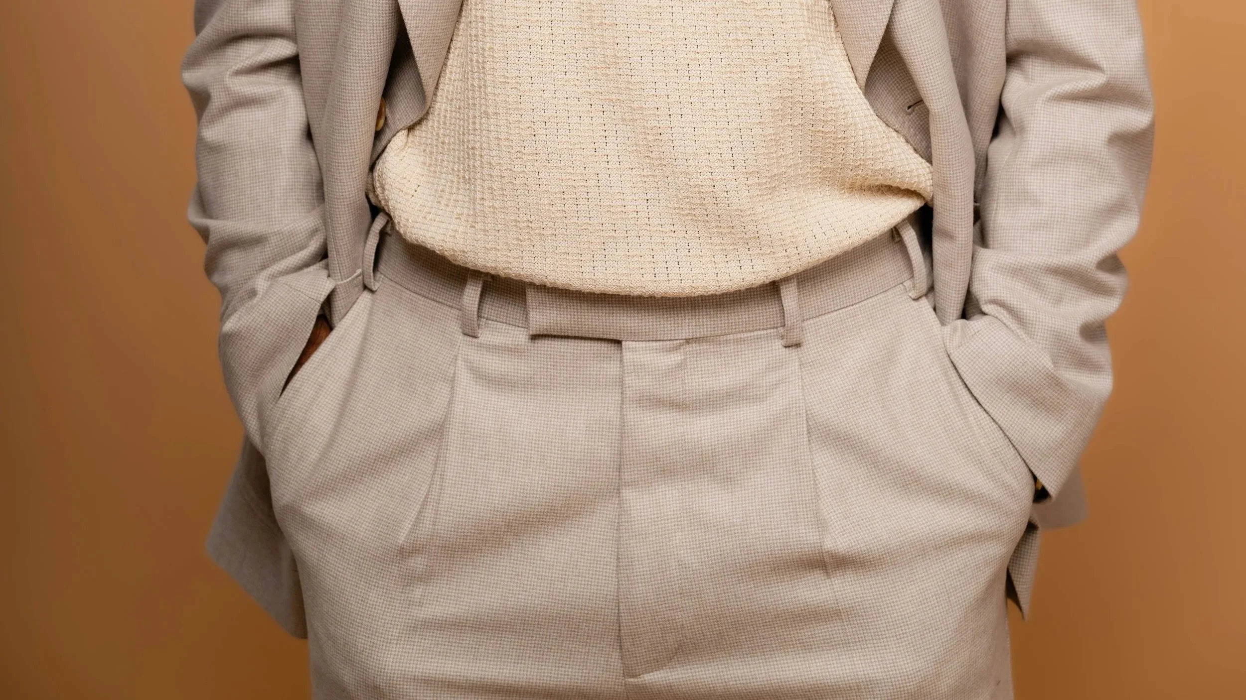 The distinct Havana fit trousers by Sprezza is cut for a classic, comfortable and medium-draped look. This classic, but subtle taper is renowned for its elegance and the single pleat in these trousers provides extra space for comfort, and maintains the drape. The trouser is finished off with 3cm turn-ups, and cream buttons.