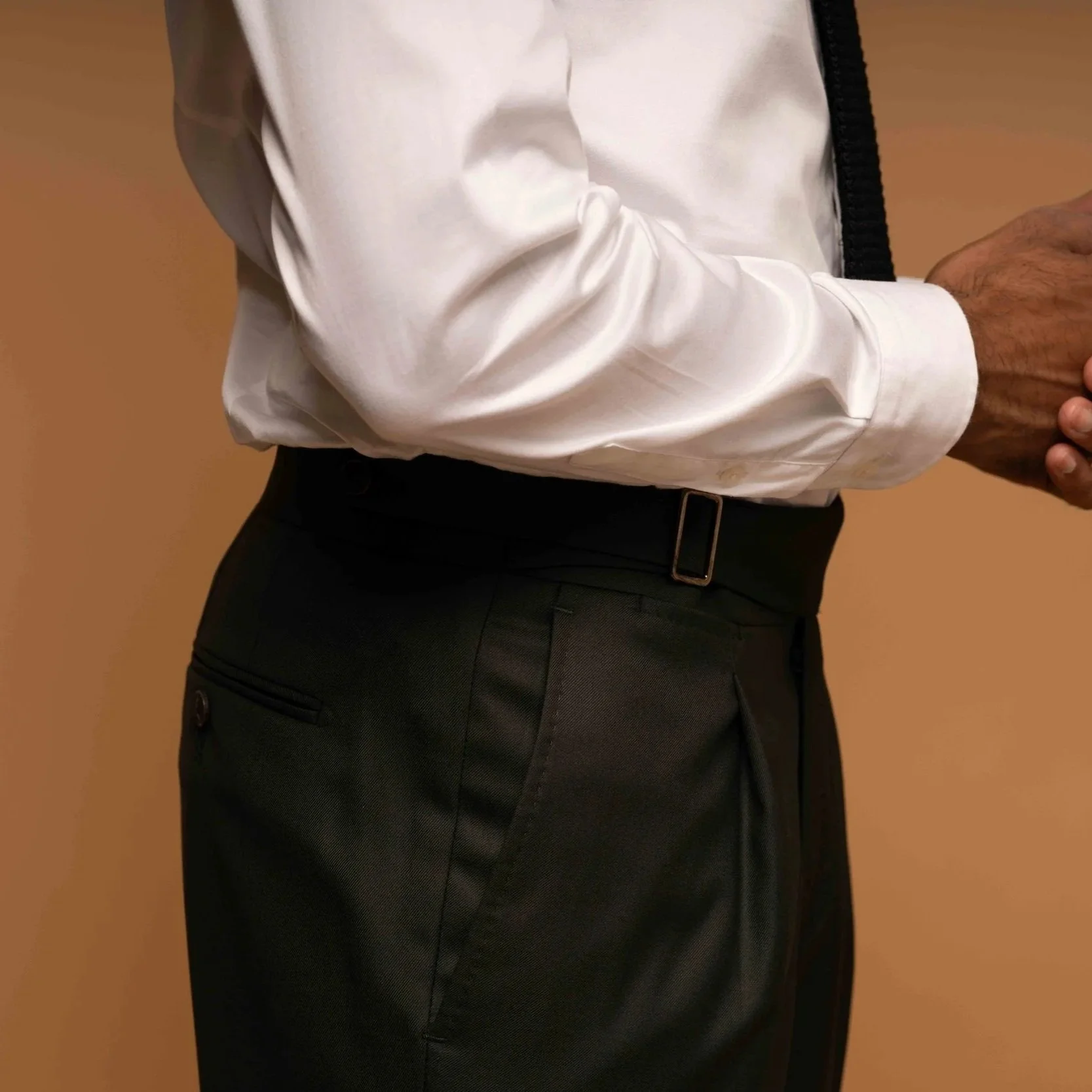 The traditional Neapolitan cut trousers by Sprezza is a slimmer, more contemporary fit which is renowned in Southern Italy. These trousers are constructed with a high-rising waist with side fastenings, a typically more sartorial look. This garment is finished off with a single pleat and a more pronounced taper to follow the shape of the leg.