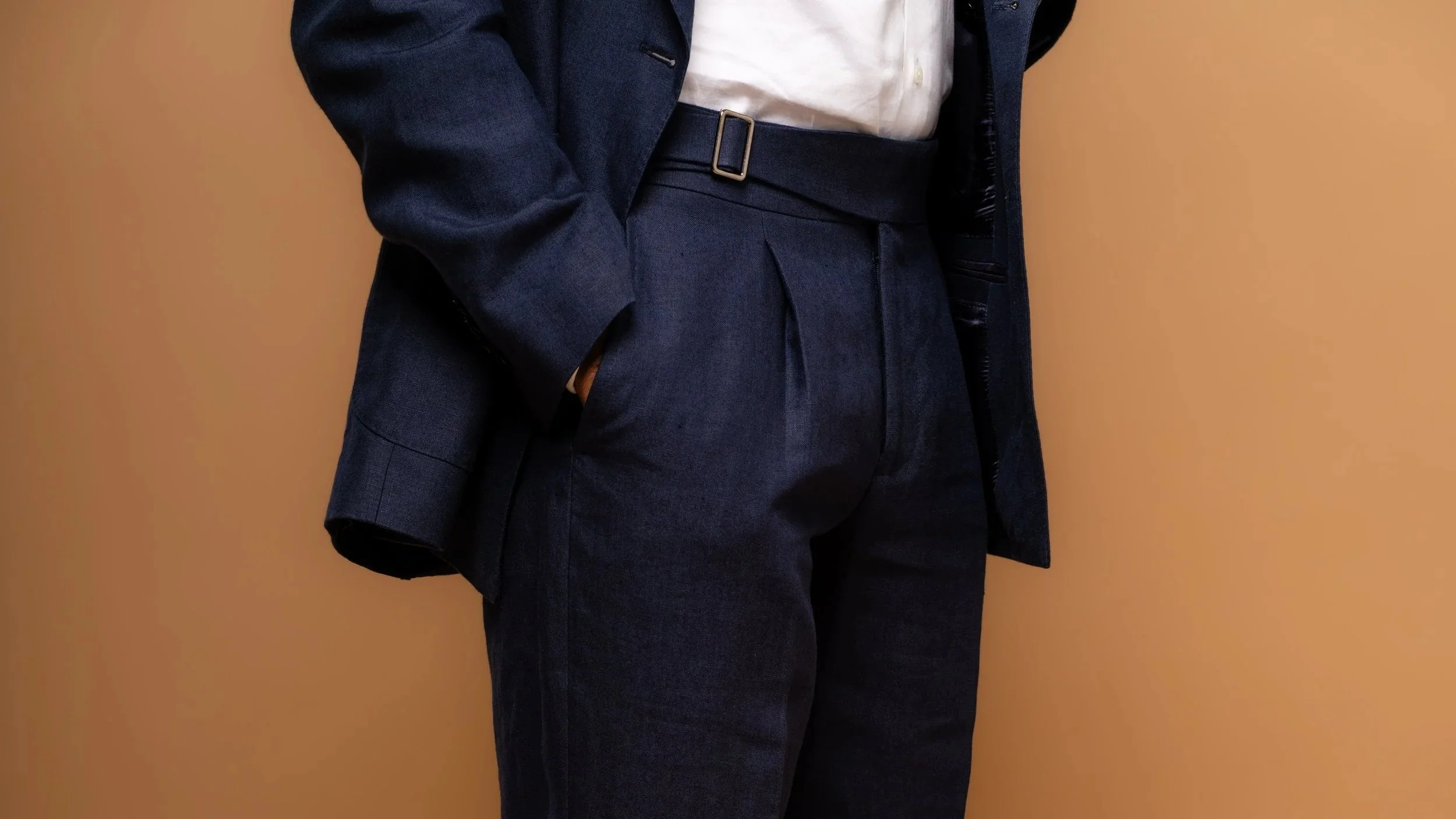 The traditional Neapolitan cut trousers by Sprezza is a slimmer, more contemporary fit which is renowned in Southern Italy. These trousers are constructed with a high-rising waist and side fastenings, typically a more sartorial look. This garment is finished off with a single pleat and a more pronounced taper to follow the shape of the leg.