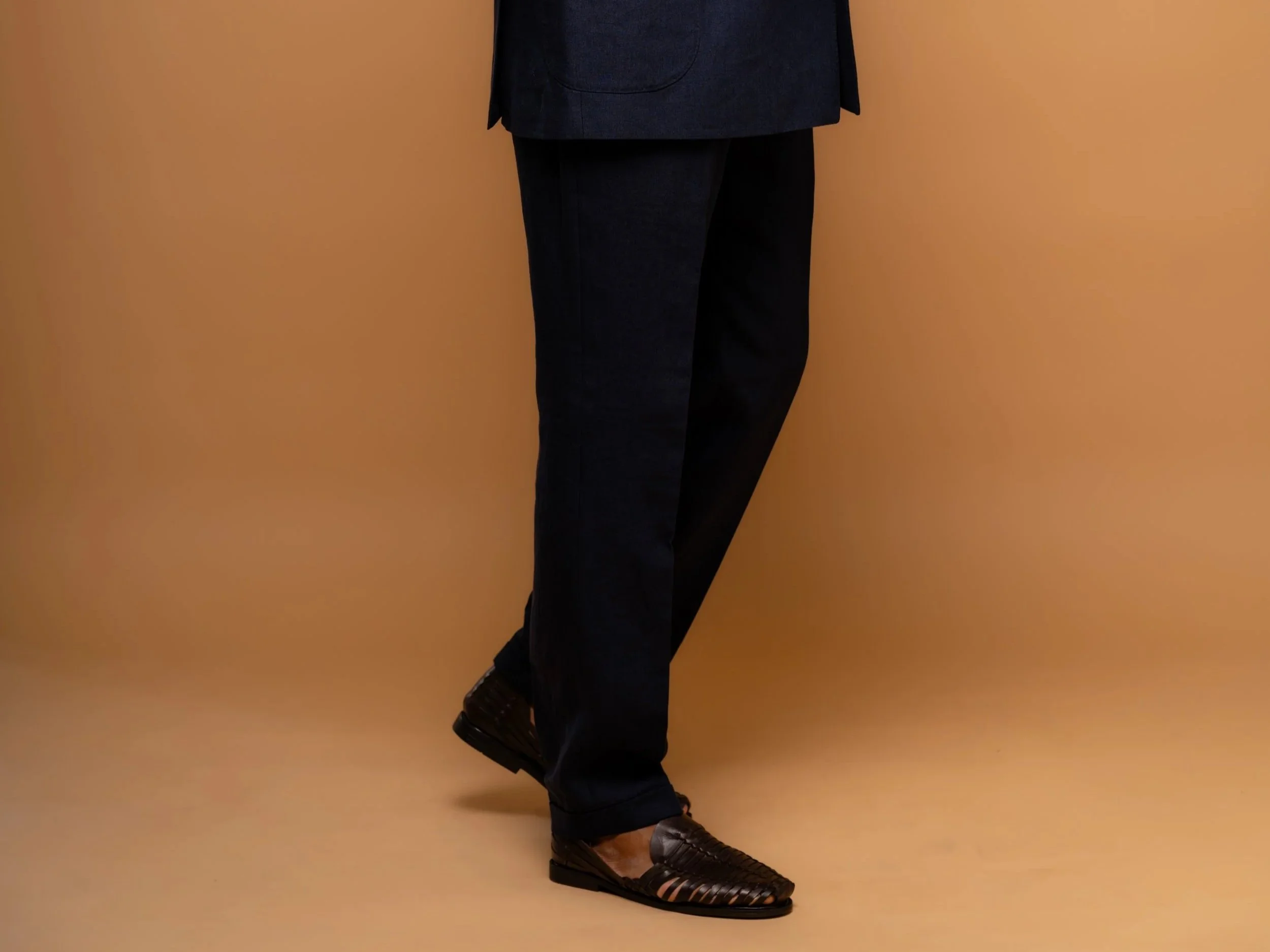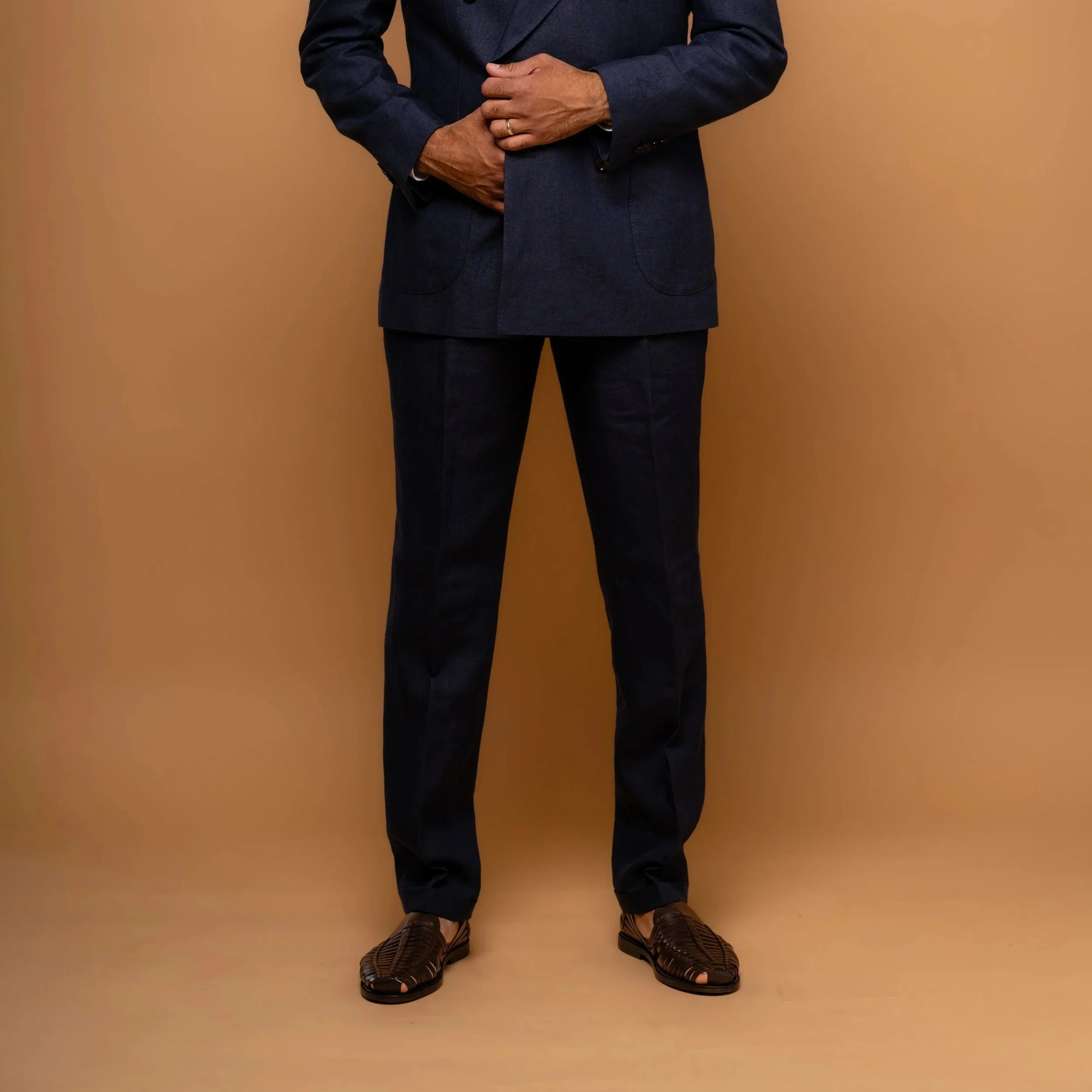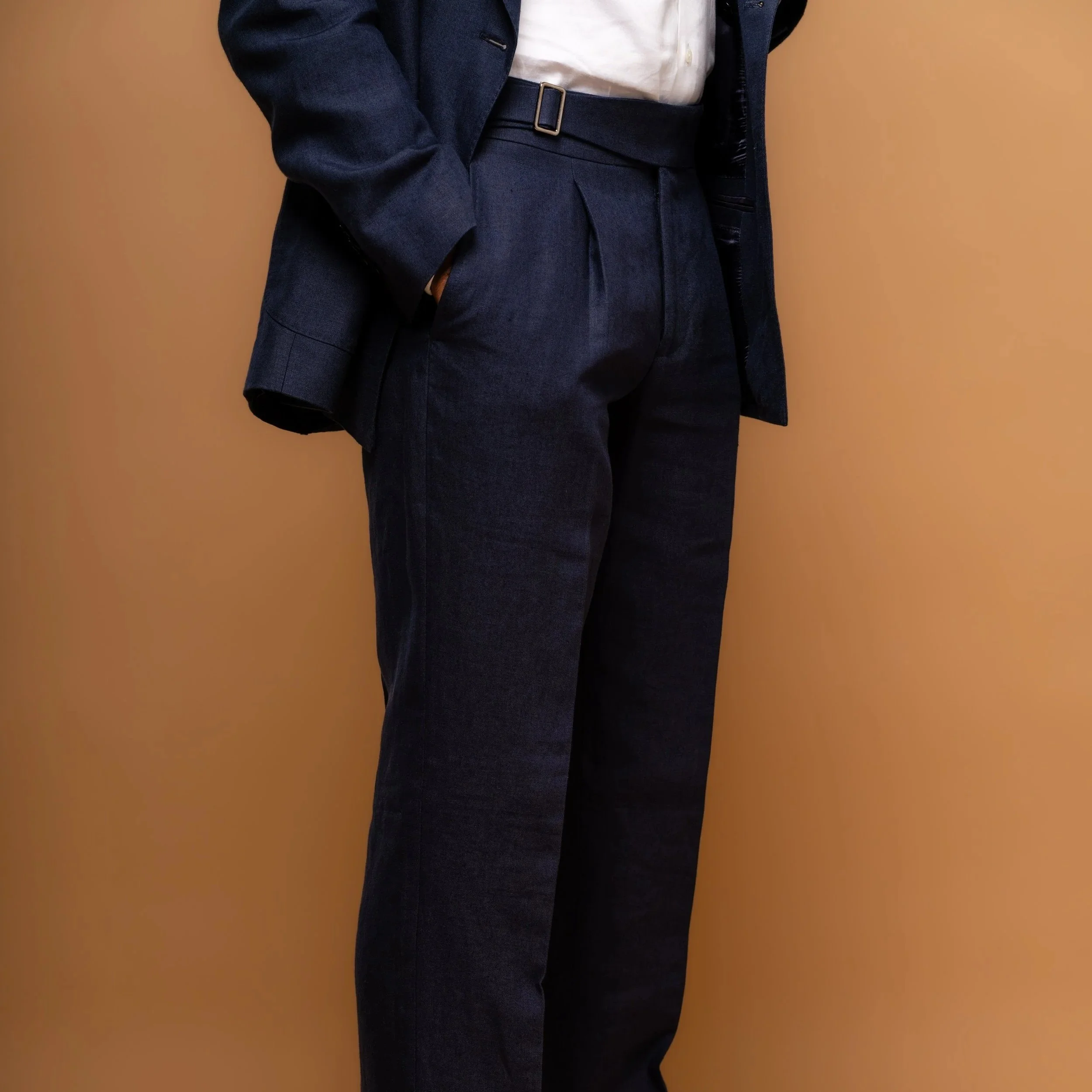 Made with 300g navy linen weave, making for a light-weight and breathable garment.